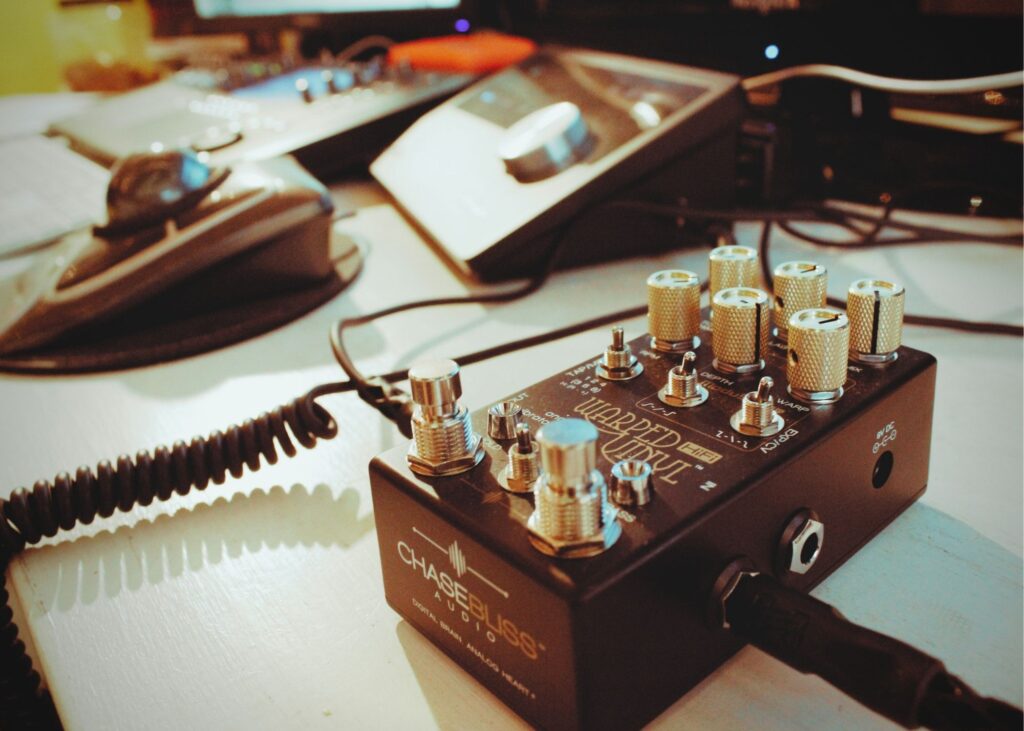 I am obsessed with two things – sound for film and guitar pedals. In sound editing, I really enjoy elevating visual content by making the dialogue as clean and clear as possible, creating sounds that help convey story or using sound design to highlight an element or scene. Guitar pedals have also been something that I love to experiment with. I have always thought that they were the coolest little devices that you can use and stack to create your own tone. Over the years I have transitioned from musician to sound designer as a creative outlet. But, my obsession with pedals has remained. Recently, I have incorporated effects pedals into my sound design process. Guitar pedals have come a long way in the years and using them like outboard gear in film design settings is very tactile and immediate.